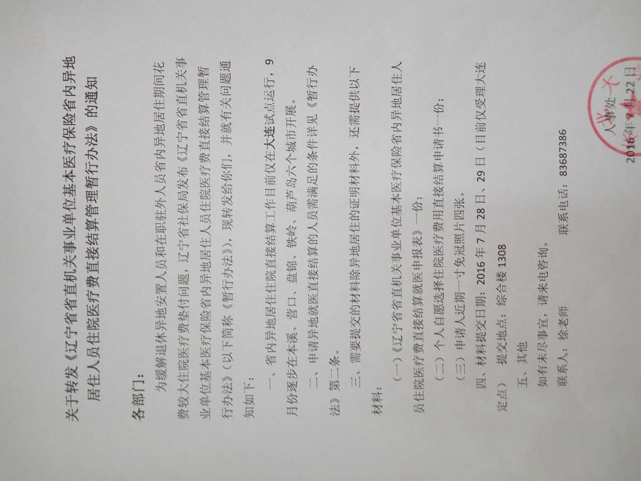 关于转发《辽宁省省直机关事业单位基本医疗保险省内异地居住人员住院医疗费直接结算管理暂行办法》的通知