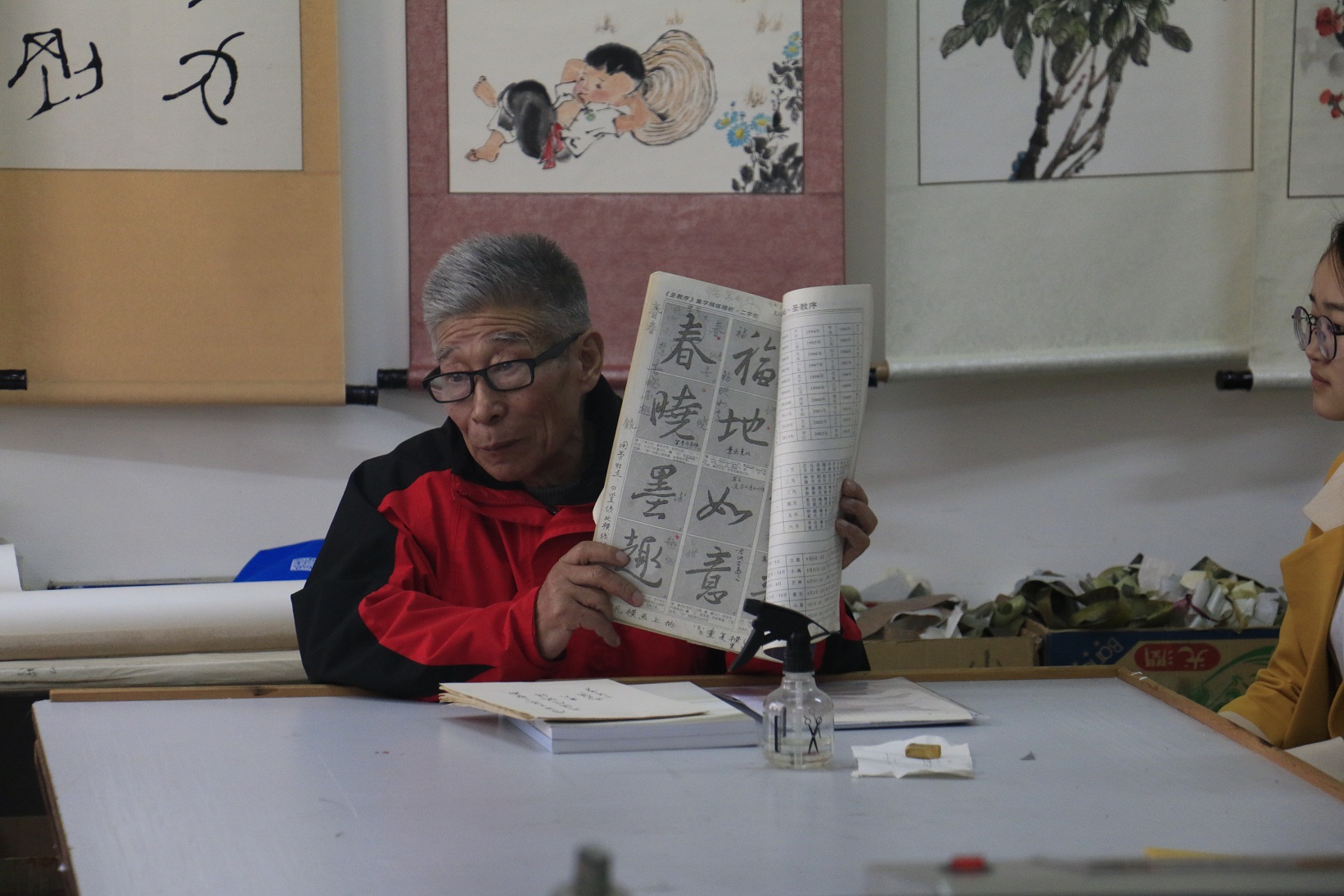 书法课的最后,刘老先生赠送给同学们东北大学老年书画研究会编写的《楮墨三十载》和刘老先生自己编写的《翰墨经典诗句》,勉励同学们珍惜少年时,书法从现在就开始。