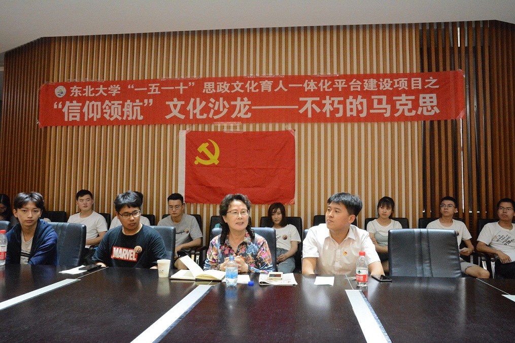 为进一步深入学习习近平在马克思诞辰200周年纪念大会上重要讲话精神的丰富内涵和重大意义,增强坚持和发展马克思主义的理论自觉和实践自觉;切实推进“不忘初心、牢记使命”主题教育,并引领青年大学生坚定理想信念,做到知行合一,让马克思主义伟大旗帜高高飘扬,将思想和行动统一到习近平新时代中国特色社会主义思想上来。6月9日在建筑馆211理学院学生办党支部举办“信仰领航”第四季第二期文化沙龙,活动主题为“不朽的马克思”。邀请原文法学院近现代史研究所所长、东北大学马克思主义学院关心下一代委员会副主任邱秀华担任嘉宾,理学院学生办党支部党员和积极分子参加了本次沙龙。