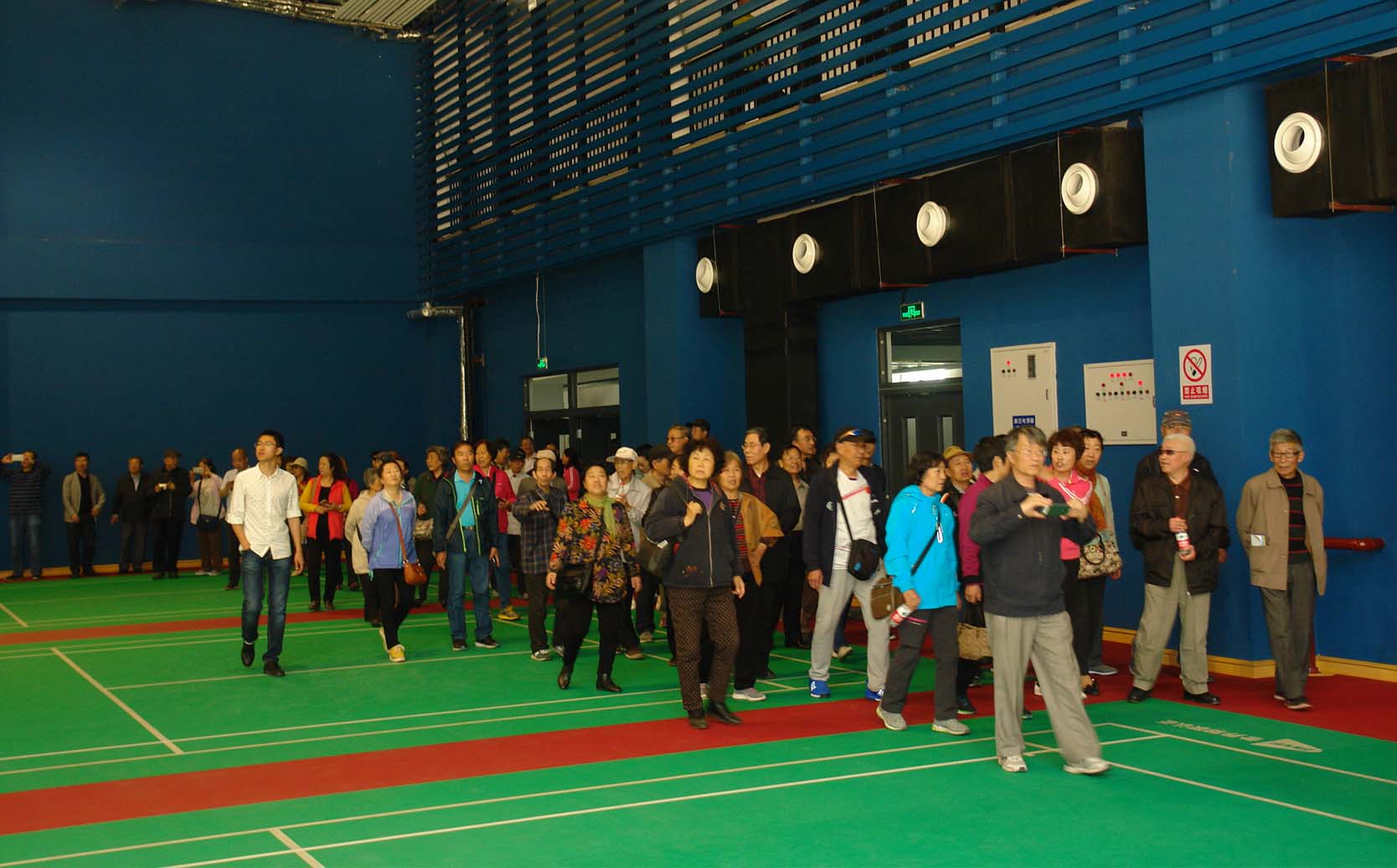 老同志们首先来到浑南校区图书馆,先后参观了公共阅览区、创客空间、图书借阅区、多媒体放映厅,现代化的建筑风格与人性化的设计理念引来老同志们高度赞扬。随后老同志们来到风雨操场,馆内设有器械健身区、篮球场、羽毛球场、健美太极教室、舞蹈瑜伽教室、台球练习室、武术室、多媒体教室、乒乓球练习室、网球场等多个体育场地及教室。参观时正值学生上课,被学生们的青春气息深深感染着,老同志们也跃跃欲试。