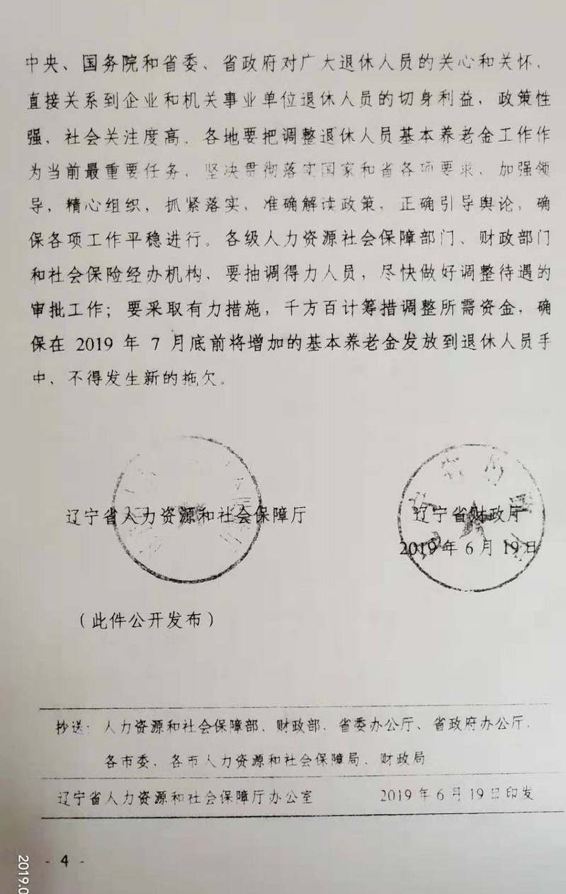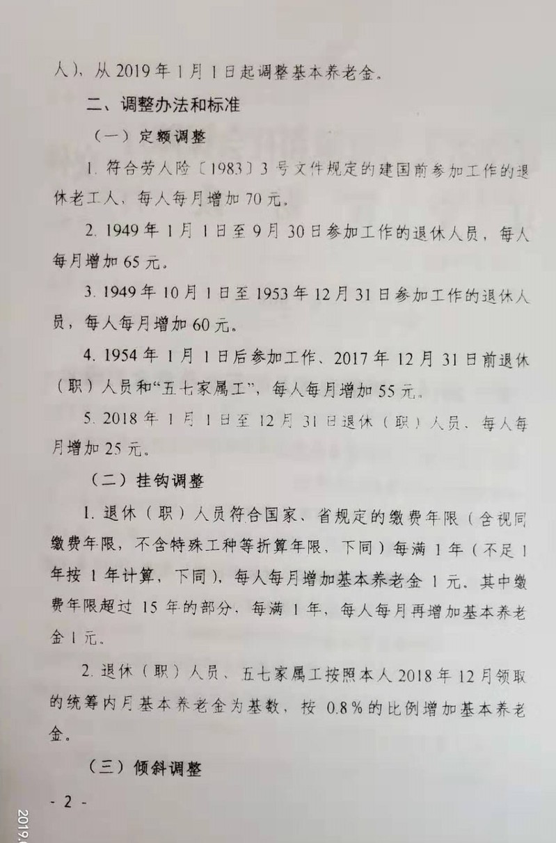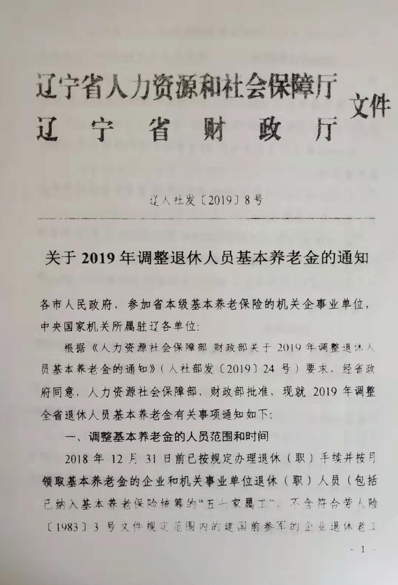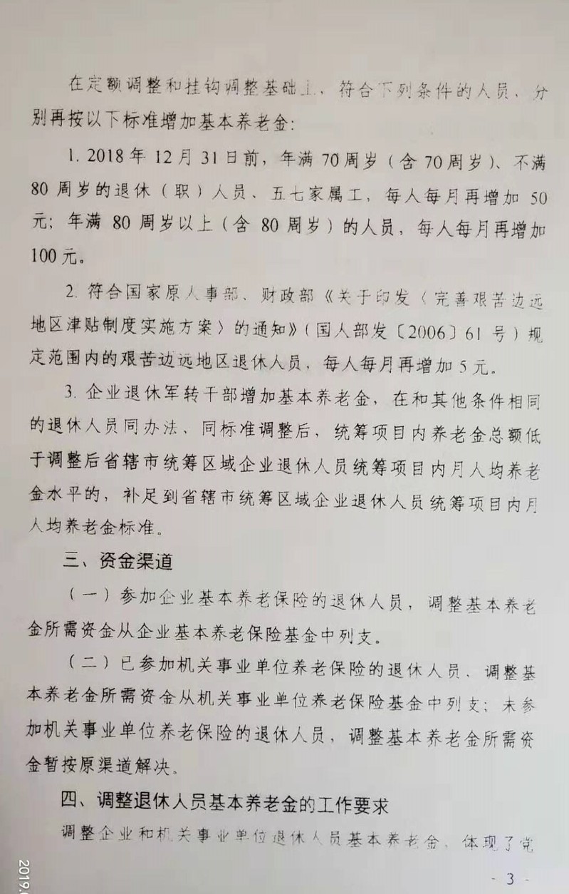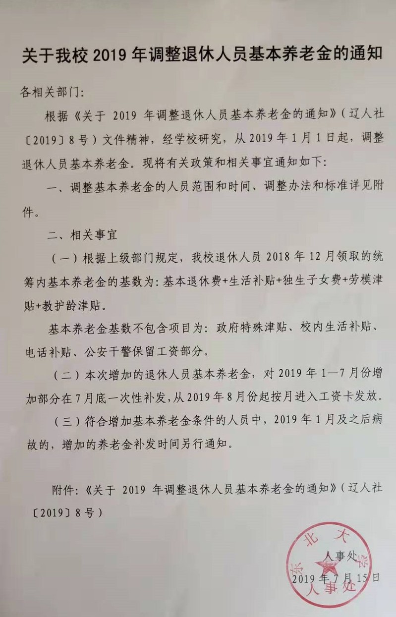 关于我校2019年调整退休人员基本养老金的通知