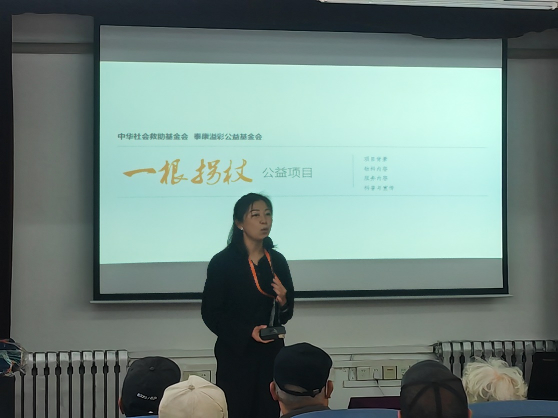“一根拐杖”防跌倒公益活动通过拐杖捐赠、医学科普、志愿服务、公益倡导等形式,为离退休老同志讲授健康知识,提供志愿服务,倡导全新的养老理念,提请大家对老年人跌倒的关注度。