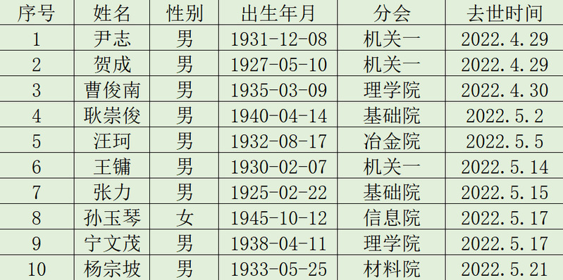 2022年五月逝世名单