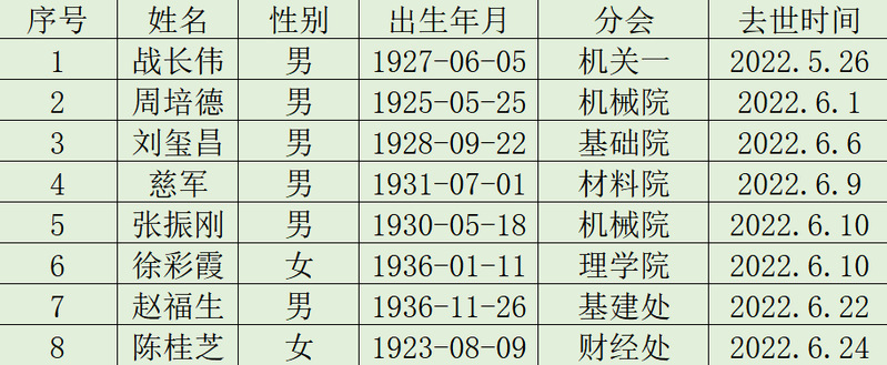 2022年六月逝世名单