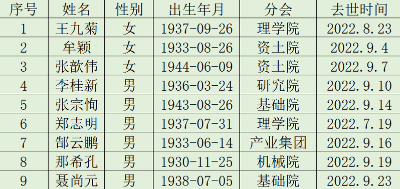 2022年九月逝世名单