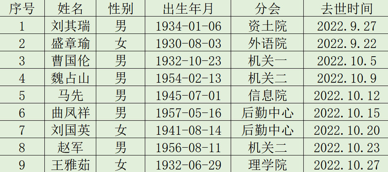 2022年十月逝世名单