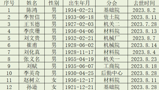2023年八月逝世名单