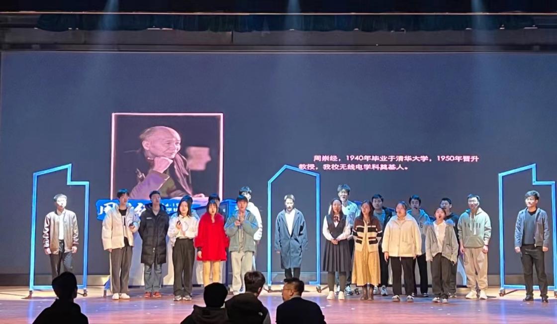 出席这次活动的有学院院长杨光红,书记武建军等领导,学院副院长张威主持会议,东北大学党委书记郭海出席会议并讲话。学院党委书记武建军做报告。讲述学院的发展情况,并发布了《我与东信的菁华故事》新书。学院今天所取得的成就离不开老一代科学家的传承,话剧在学院武书记讲话后正式开演了。风雨征程、百年荣光,在东北大学百年校庆之际,为回顾学院学科发展历史和经久流传的科学家精神,学院师生自编、自导、自演的。该剧以学院老一辈科学家郎世俊、张嗣灜、刘宗富、杨自厚等老一辈科学家的奋斗传奇为原型,记录着以院训精神“行胜于言、敢为人先、和而不同、居安思危”为主线,讲述了一代代东信人严谨治学、创建专业、科研攻关、奋进一流的历史故事。