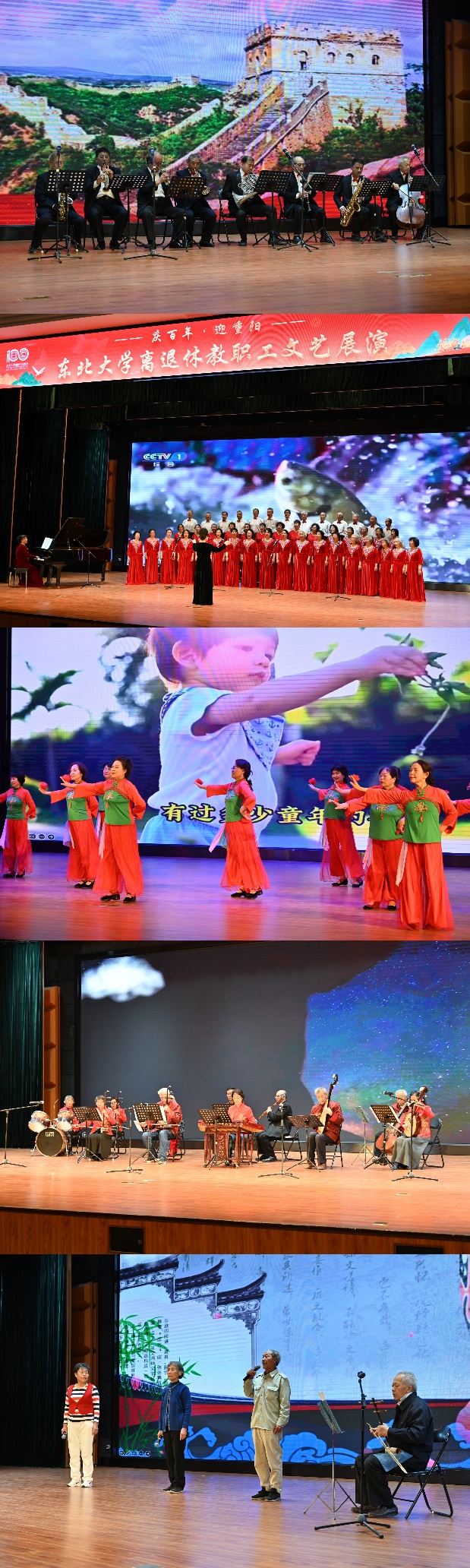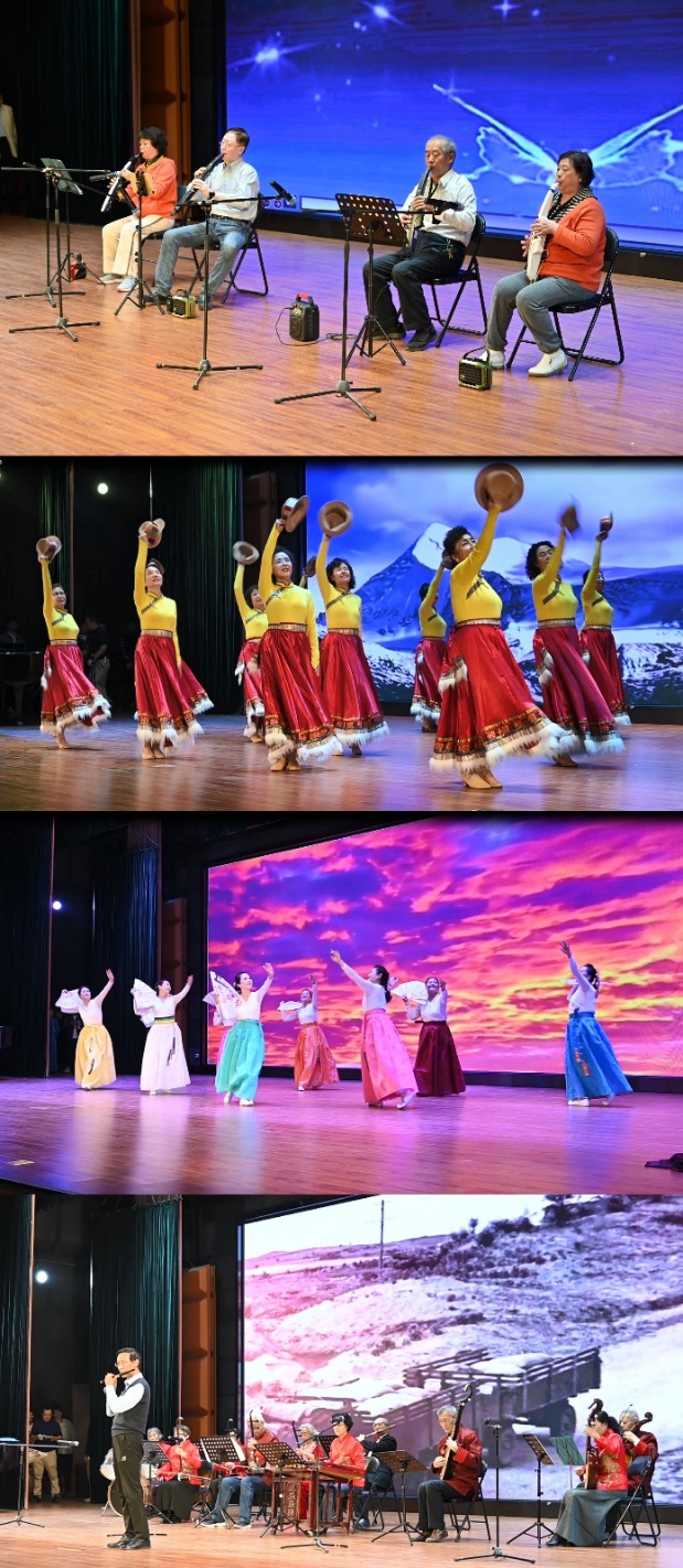 本次展演共计18个节目,汇集了东北大学离退休各兴趣协会200余名老同志表演者,通过合唱、京剧、乐器演奏、舞蹈、旗袍秀等多种形式,展现了我校老同志老有所为、老有所乐的精神风貌。同时,本次活动联合了东大社区、迎湖园社区两个单位,不仅实现了邻里互动、友邻互通,也拓宽了老同志们的“朋友圈”。