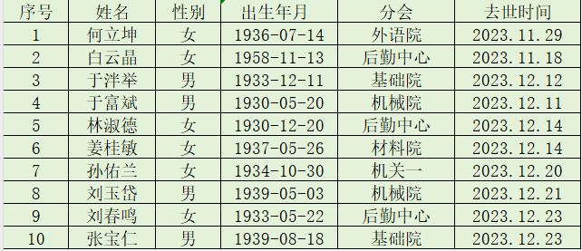 2023年十二月逝世名单