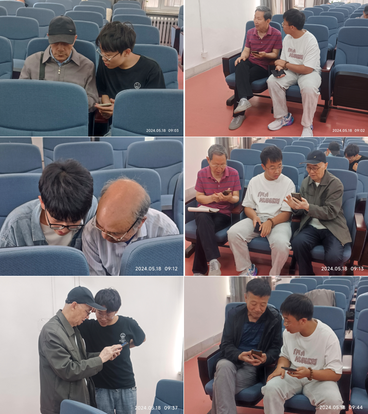 2024年5月18日,在离退休处的暖心关怀下,由信息一、二支部、信息分会和信息学院组织了一次如何使用智能手机的辅导课。辅导“老师”是由校园服务部负责人刘冠志同学带领的 7 名热心同学担任,有 8 位退休老同志接受了辅导。上午 9 点,辅导课准时开始,采取一对一的辅导方式,确保每位老同志都能得到细致入微的指导。