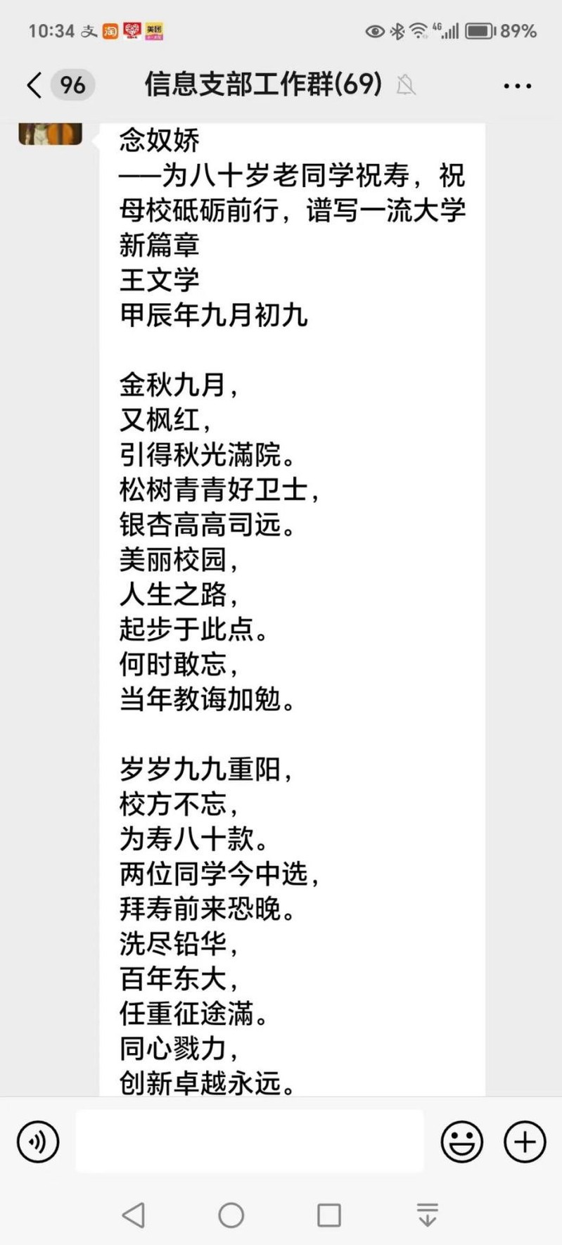 祝寿结束后,全体参加人员合影留念。参加会议的老师纷纷留下感言,精选几段:王文学老师的《念奴娇》、何玉琴老师的祝寿诗、许桂芝老师的现场朗诵道出了老师们的心声。