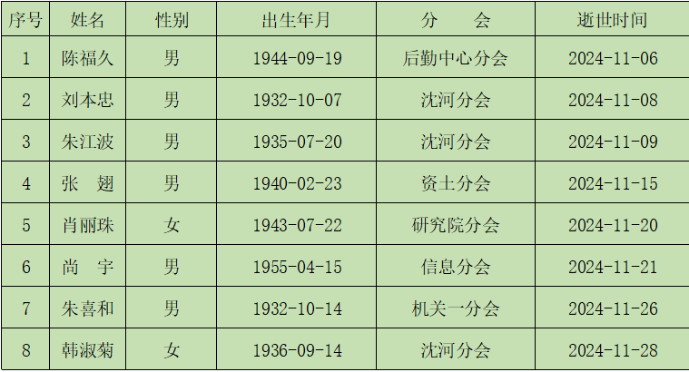 2024年11月逝世名单