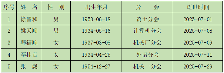 2025年7月逝世名单