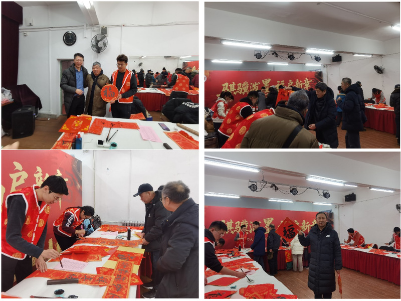 离退休活动中心一楼101室活动现场,艺术学院学生翰墨飘香,弘扬中华传统文化,挥毫传情,献上新春美好祝愿,为老同志写新春送祝福。老同志们精神矍铄、欢声笑语、兴致高昂,时而凝神聚气精选春联,时而热情洋溢相互交流,共抒情怀与美好期许,面对一副副真挚祝愿的春联,老同志们脸上无不展现出发自内心的幸福与欢乐。