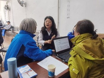 在为老同志细致讲解的基础上,采取一对一方式,对老同志们的问题进行了耐心的解答。